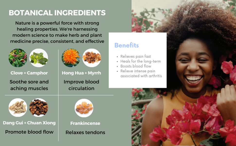 Crafted from a powerful blend of botanicals, including camphor, clove oil, boswellia , for effective and natural pain management you can trust.